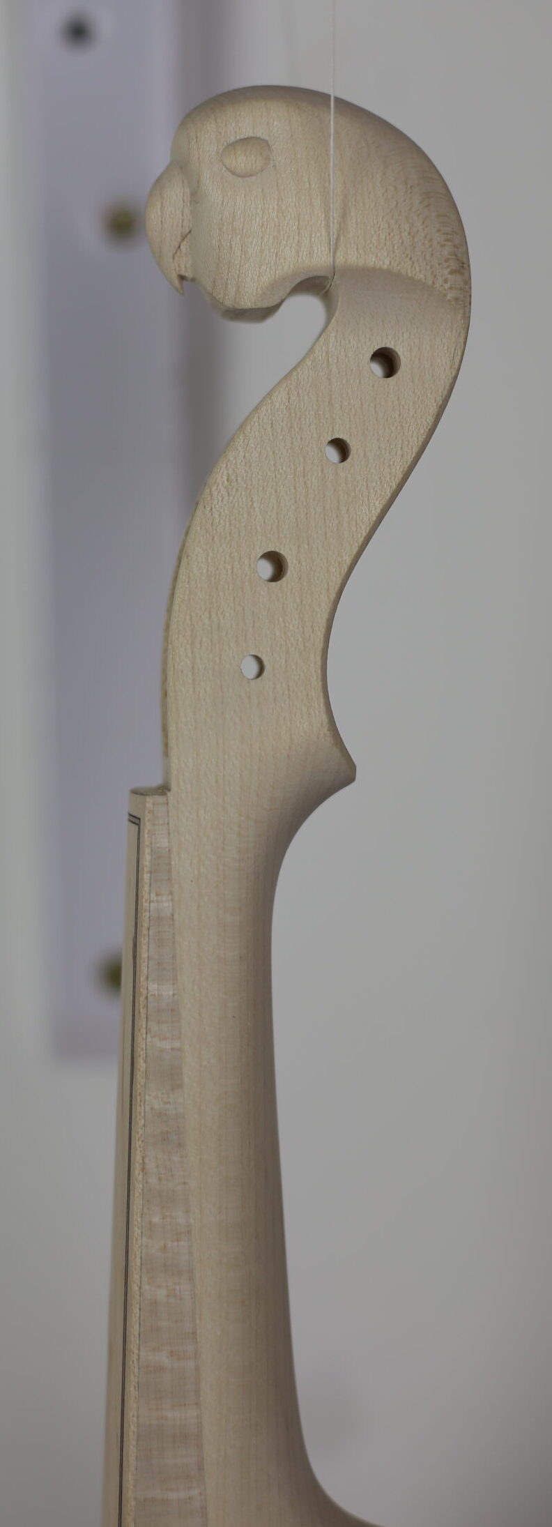 Deze viool is momenteel in de maak en bijna klaar voor de lak.