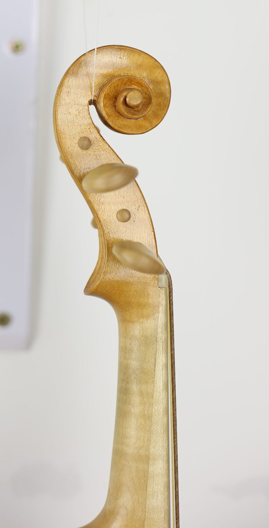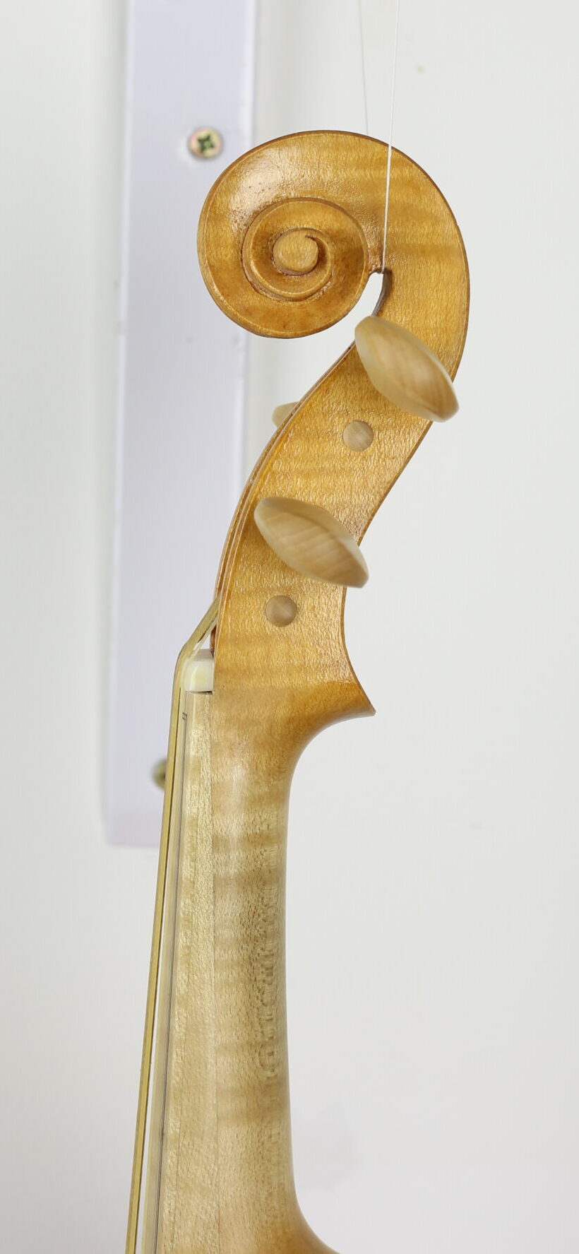 De hoekjes heb ik een klein beetje naar eigen ontwerp aangepast, maar de welving, klankgaten en krul zijn traditioneel van stijl.
